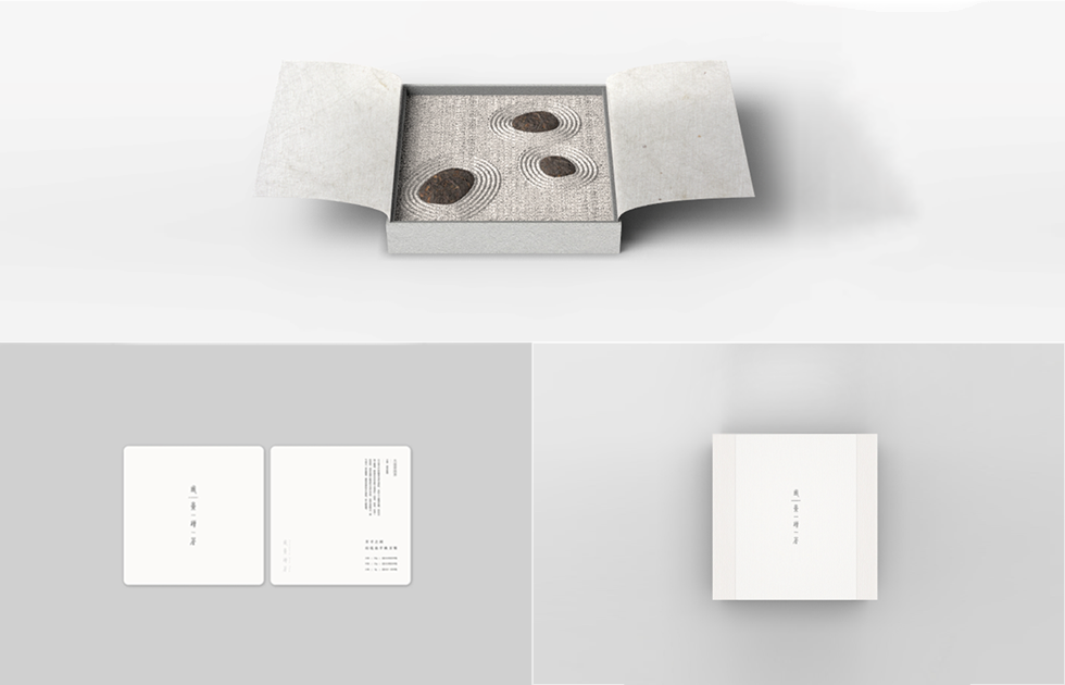 定位为旅游行业第一款设计型禅茶,产品的设计思路来源于中国传统枯山水概念,将普洱茶坨与鹅卵石造型相结合,营造一种“方寸之地幻出千岩万壑”的意境。礼品分上下两层,上层为日常摆设观赏作用,下层为九块不同大小的茶坨,便于冲泡饮用,此款设计禅茶不仅满足了高端、品味、精致的礼品需求,同时也开创了普洱礼品茶新领域。