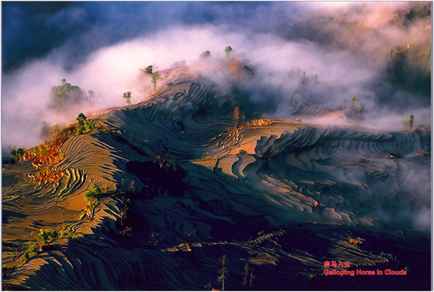有的人说,哈尼梯田是上帝的杰作,我说哈尼梯田怎么会是上帝的杰作,这是农民老百姓用血汗一锄头、一锄头挖出来的,如果非要说是上帝的杰作,那我们的农民就是上帝。人类聚居的典型案例,以水稻梯田为主的梯田文明,哈尼梯田实际上是农耕稻作和生态文明结合在一起形成的景观,它是生态文明的一个产物,它的文化、农技都是基于生态文明基础之上的,生产活动都是低碳的环保的良性可持续生产方式,生活方式也是和谐共荣的。哈尼梯田是我们老祖宗留给我们非常宝贵的遗产,也是我们今后发展的一个基础。
