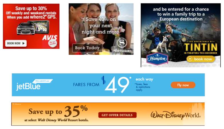 根据2011年购买Google关键词的行业进行分析,旅游行业也已经成为Google的第三大市场,2012年旅游行业已经跃升为第二大类,成为仅次于金融业在Google上投放广告最多的行业。对2011年7—9月旅游网络营销方式进行统计分析,目前旅游在线广告的主要形式依据比重依次为搜索引擎(30%)、email(25%)、社交媒体(18%)、展示广告(10%)、代理营销(5%)、移动互联网(3%)、在线团购(3%)和其他方式(6%)。