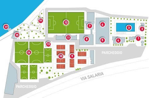 塞拉里亚运动村(Salaria sport village)位于意大利罗马市北部,交通区位优良,紧邻入城高速,距罗马市区仅6公里。运动村借助于台伯河的优质水体以及河畔的田园风光,运动村的生态环境极佳,让游客在与自然环境亲密接触中享受运动健身带来的畅快与舒适。