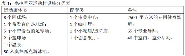 运动村的建设将众多体育项目集于一体,健身操、体育舞蹈、瑜伽、门球、网球、乒乓球、羽毛球等适于室内活动的项目可以进行场馆式管理、开发,而五禽戏、易筋经、六字诀、导引、太极拳等中国传统的体育养生项目尤其适合在空气清新、自然环境优美的休闲公园、河滨、湖滨进行练习,高尔夫、蹦极、滑雪等可进行专门的场地建设。运动村的建设将会促进体育旅游的集中开展,并引领一种全新的体育生活方式。