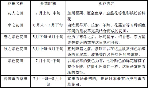 日本北海道的富田农场位于富良野地区,介于上富良野町及中富良野町之间,温带海洋性气候,平均气温:1月-4月~-10℃,8月18~20℃。年降水量 800~1200毫米。为北海道最先驱的花田之一。农场规划12公顷,是一个私家农场。目前已成为富良野地区,甚至整个北海道最著名的花卉农场,园内种植也由昔日以熏衣草为主,变成有多达一百五十种花卉,从每年4月花季开始,直至10月中旬,游人络绎不绝。农场内建有设施,制作各类花卉成品。由于花田的面积相当广阔,且颜色鲜艳,近年成为旅游热点,是旅游北海道人士必到之处。