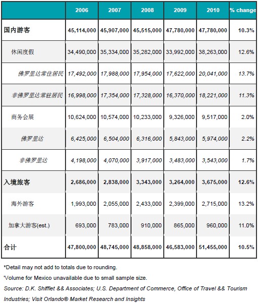 表2 奥兰多城游客统计