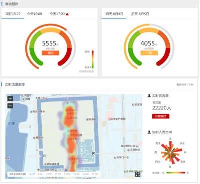 通过景区人群热力图对客流量进行监测,可以及时做出踩踏风险预警,有助于景区合理预测未来的客流量。